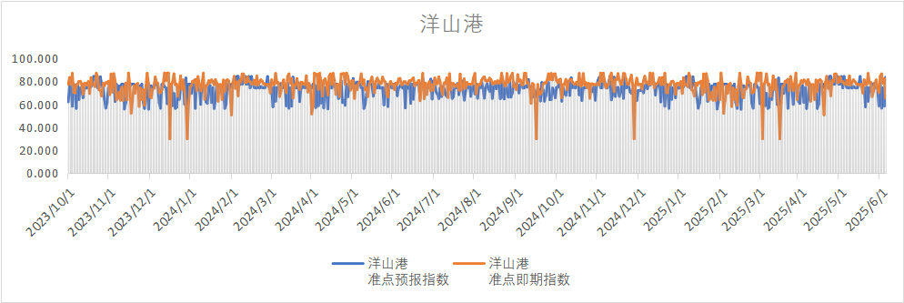 通过对上海港水域的预测通航环境、船舶预计抵港时间申报准确性(预计抵港准点率)、预测船舶航行动态等多维数据进行深入分析,形成进出港通航安全预报评价指标体系和准点预报评价规则,编制并发布上海港国际航行集装箱船舶进出港安全准点预报指数,并于每个工作日发布当天的预报指数结果(例如:1017日发布1017日的预报指数结果)和前一天的即期指数结果(例如:1017日发布1016日的即期指数结果)