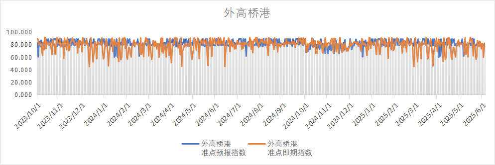 通过对上海港水域的预测通航环境、船舶预计抵港时间申报准确性(预计抵港准点率)、预测船舶航行动态等多维数据进行深入分析,形成进出港通航安全预报评价指标体系和准点预报评价规则,编制并发布上海港国际航行集装箱船舶进出港安全准点预报指数,并于每个工作日发布当天的预报指数结果(例如:1017日发布1017日的预报指数结果)和前一天的即期指数结果(例如:1017日发布1016日的即期指数结果)