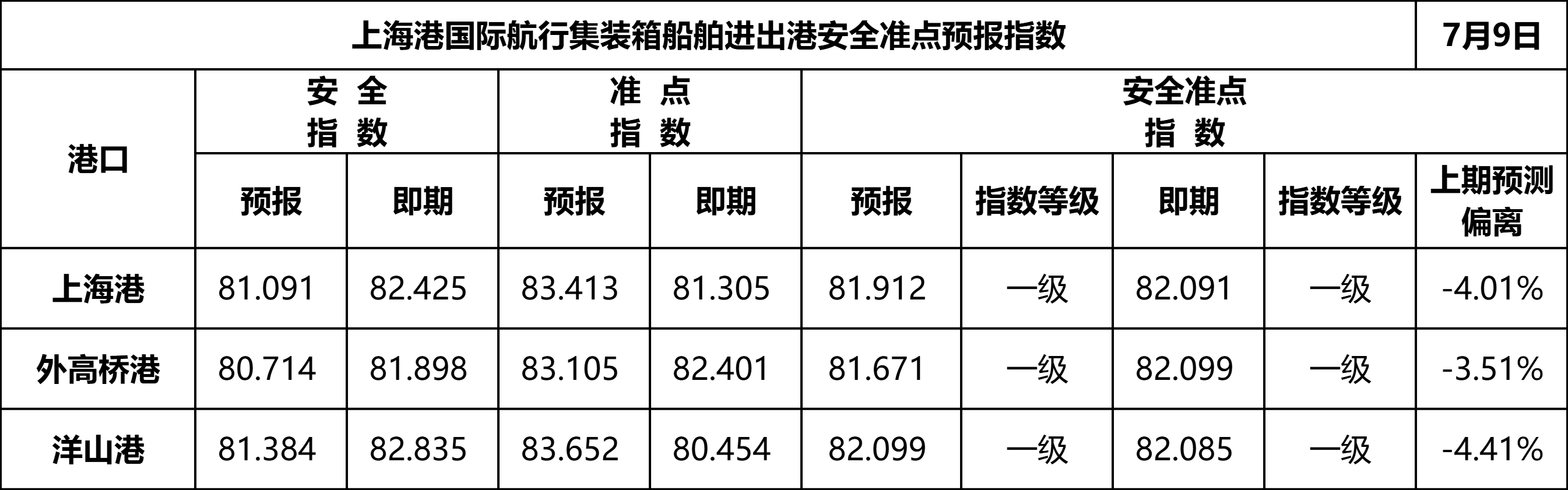 【发布】上海港国际航行集装箱船舶进出港安全准点预报指数(7.9)