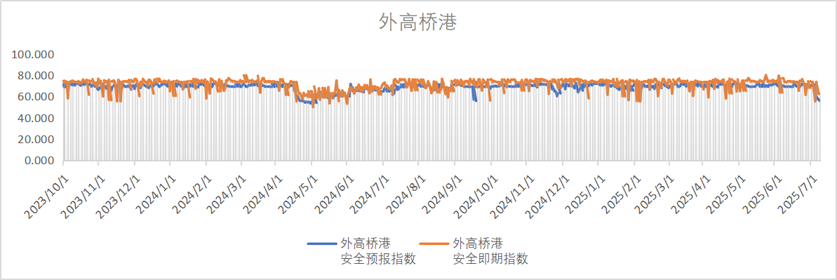 该指数运用AIS大数据技术,分析近十年上海港靠离泊作业准点情况和事故险情数据,从环境、船舶、航行、管理四个维度构建临近预报(Nowcasting)模型,评估与预报船舶进出港安全和靠离泊准点态势。