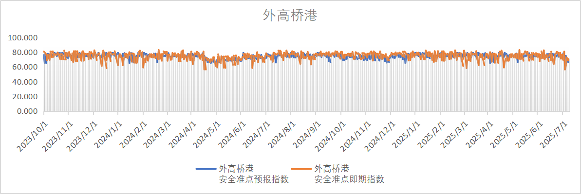 通过对上海港水域的预测通航环境、船舶预计抵港时间申报准确性(预计抵港准点率)、预测船舶航行动态等多维数据进行深入分析,形成进出港通航安全预报评价指标体系和准点预报评价规则,编制并发布上海港国际航行集装箱船舶进出港安全准点预报指数,并于每个工作日发布当天的预报指数结果(例如:1017日发布1017日的预报指数结果)和前一天的即期指数结果(例如:1017日发布1016日的即期指数结果)