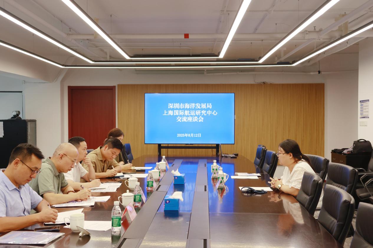 8月12日下午,深圳市海洋发展局综合业务处处长苏良生率调研组一行到访上海国际航运研究中心,围绕航运绿色智能化转型、高端航运服务、海洋城市评价标准体系建设等议题开展专题调研,通过实地参观与座谈交流,探讨上海国际航运中心建设经验及智库平台赋能路径,为深圳加快打造全球海洋中心城市提供借鉴。上海国际航运研究中心秘书长、上海海事大学教授张婕姝接待了来宾。