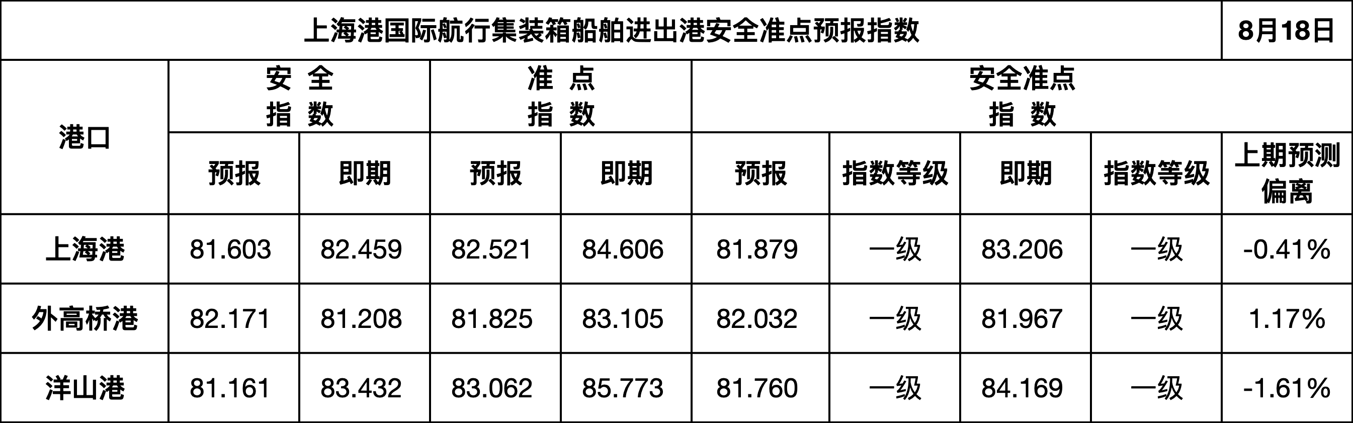 【发布】上海港国际航行集装箱船舶进出港安全准点预报指数(8.16-8.18)
