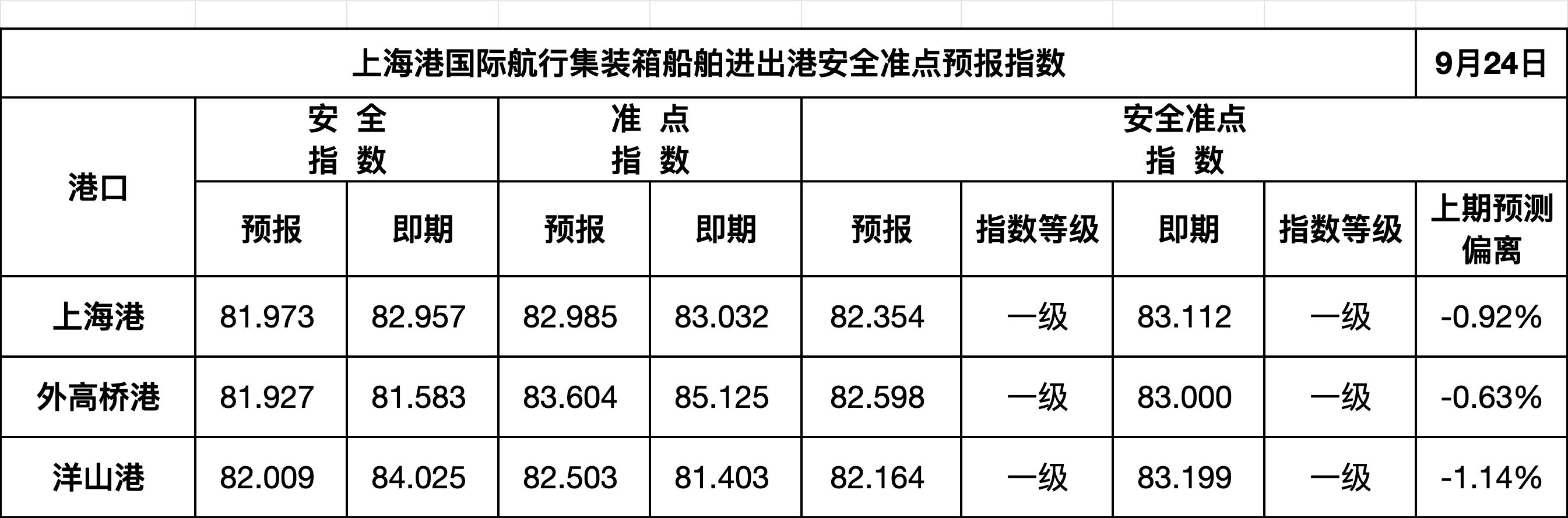 【发布】上海港国际航行集装箱船舶进出港安全准点预报指数(9.24)
