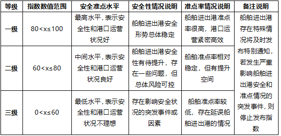 通过对上海港水域的预测通航环境、船舶预计抵港时间申报准确性(预计抵港准点率)、预测船舶航行动态等多维数据进行深入分析,形成进出港通航安全预报评价指标体系和准点预报评价规则,编制并发布上海港国际航行集装箱船舶进出港安全准点预报指数,并于每个工作日发布当天的预报指数结果(例如:1017日发布1017日的预报指数结果)和前一天的即期指数结果(例如:1017日发布1016日的即期指数结果)