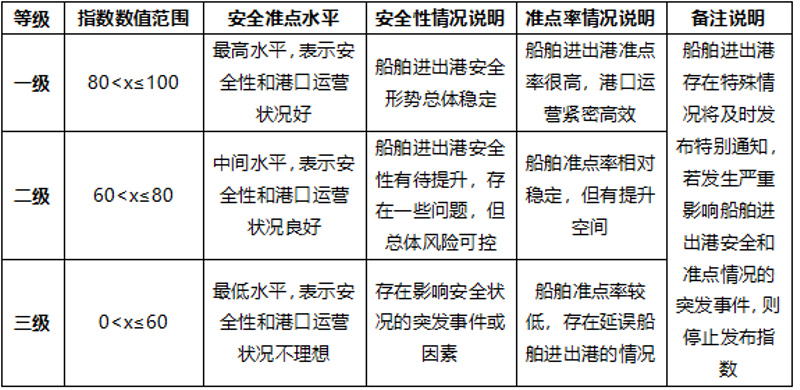 通过对上海港水域的预测通航环境、船舶预计抵港时间申报准确性(预计抵港准点率)、预测船舶航行动态等多维数据进行深入分析,形成进出港通航安全预报评价指标体系和准点预报评价规则,编制并发布上海港国际航行集装箱船舶进出港安全准点预报指数,并于每个工作日发布当天的预报指数结果(例如:10月17日发布10月17日的预报指数结果)和前一天的即期指数结果(例如:10月17日发布10月16日的即期指数结果)。