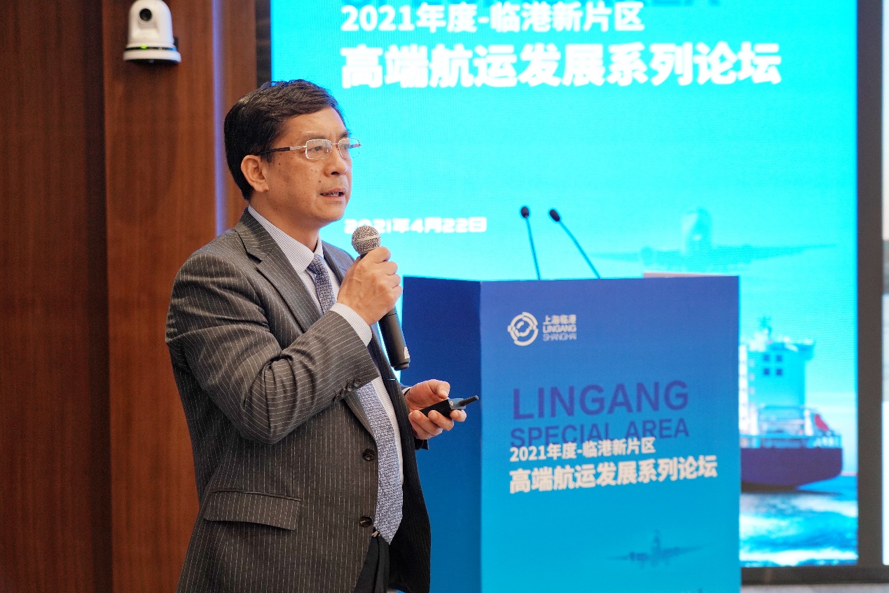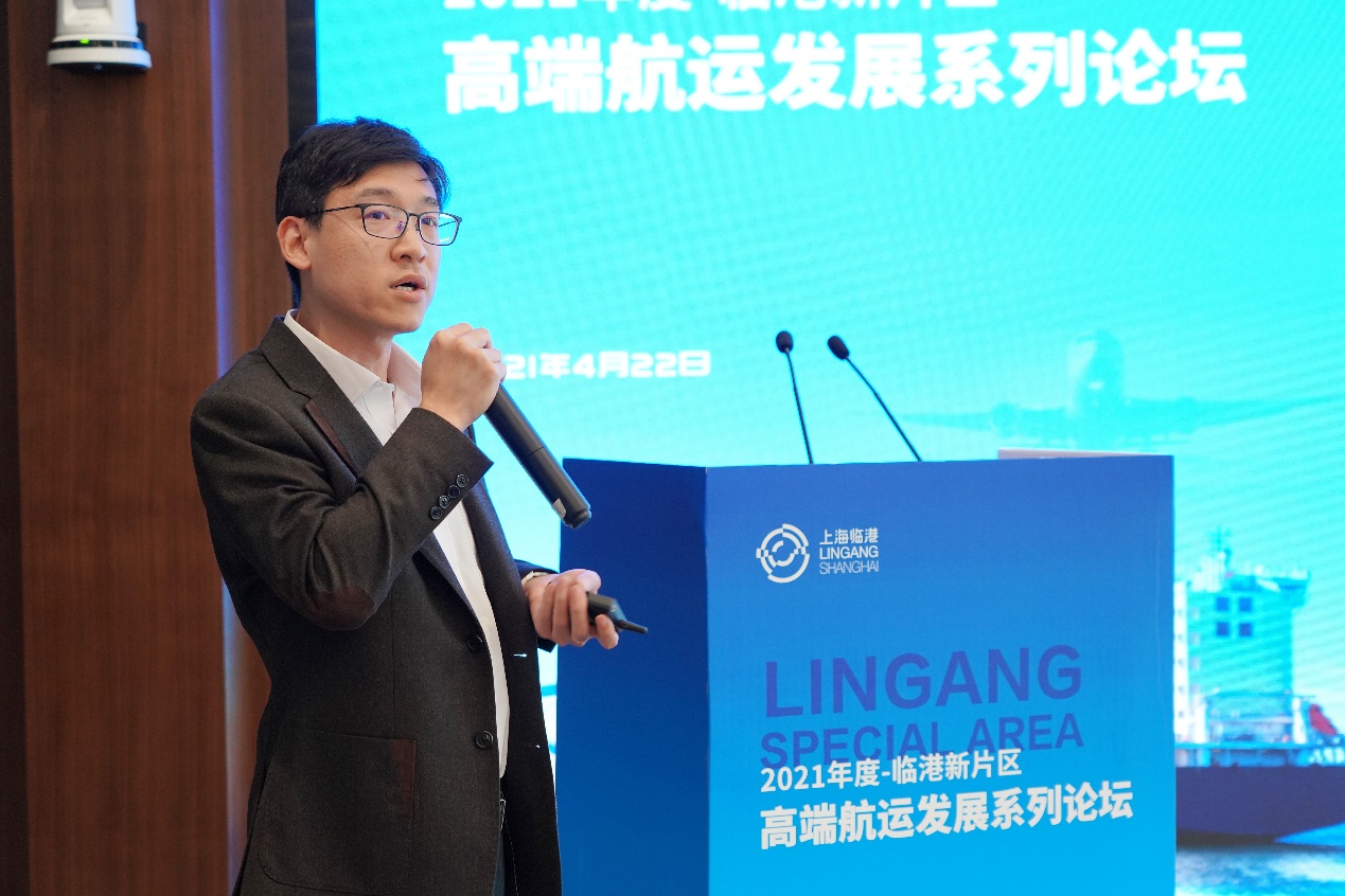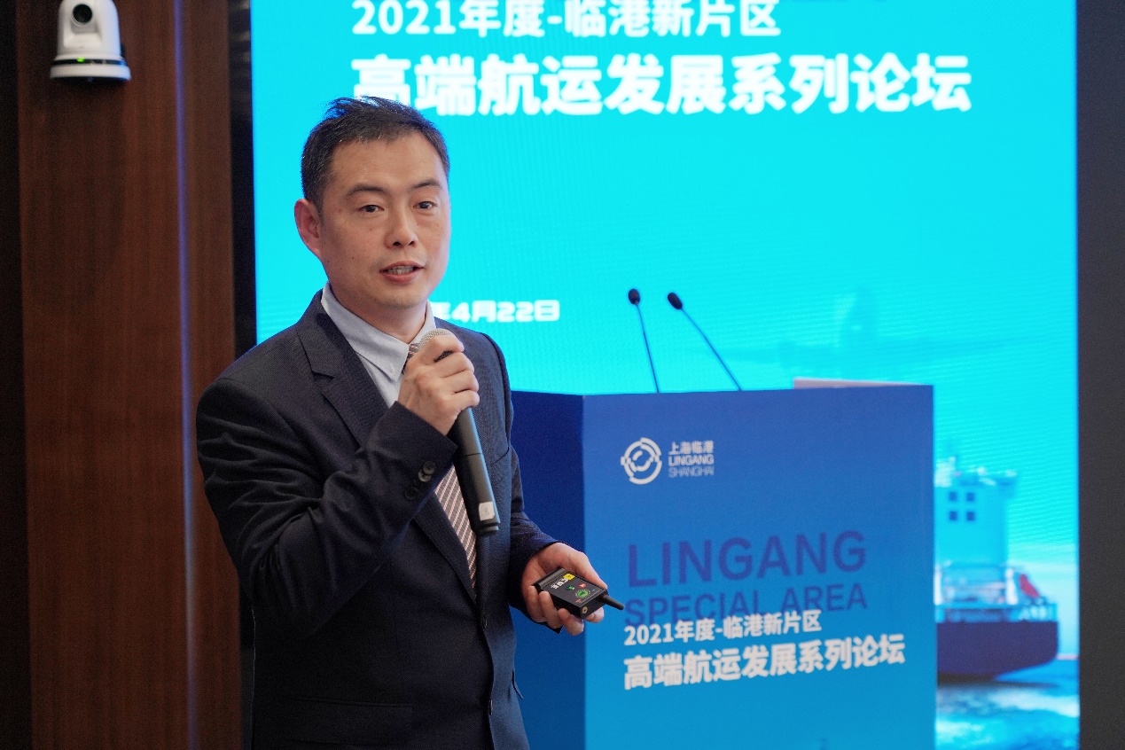 图四:临港新片区管委会航运处副处长林益松发表演讲