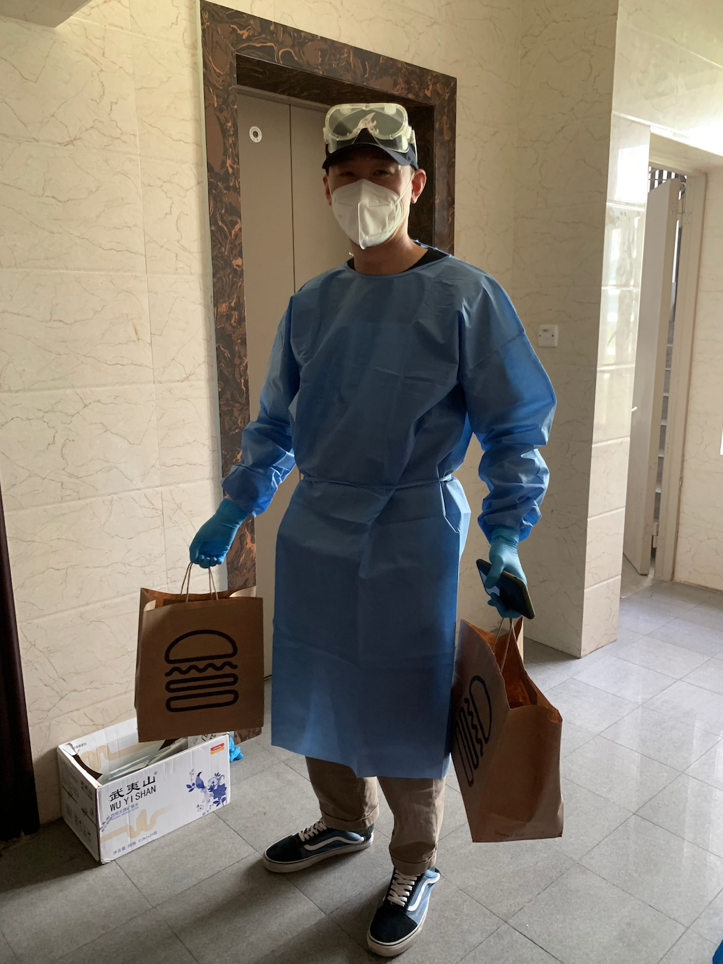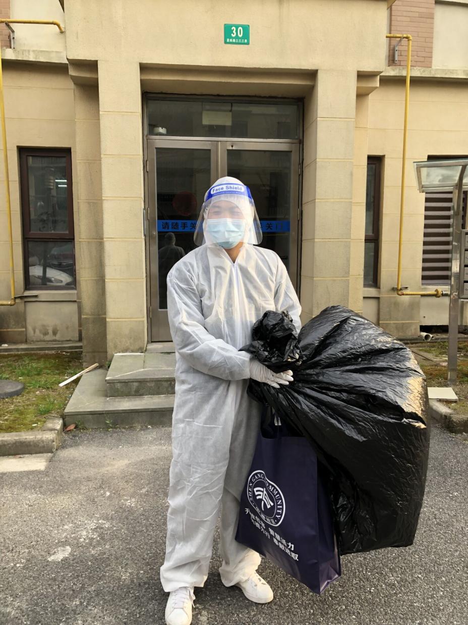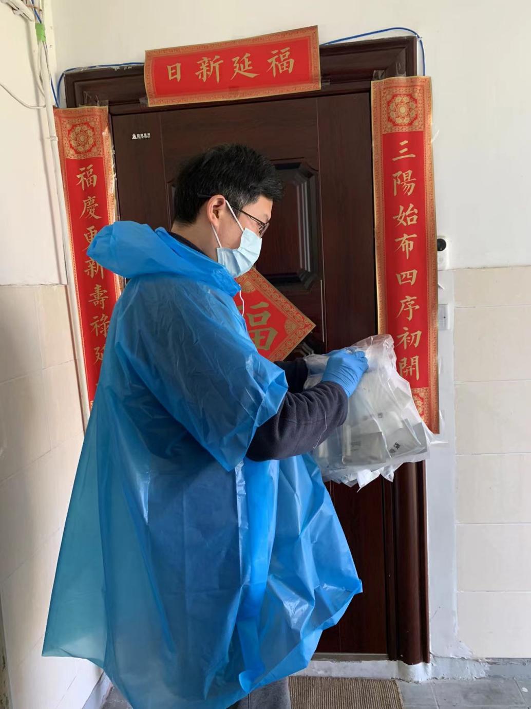 杂志编辑部扈欣朋每周根据楼组长的排班计划表,按时参加塘桥街道香花居委楼栋志愿者活动,帮助居民传递分配生活物资与医疗医用检测物资等。