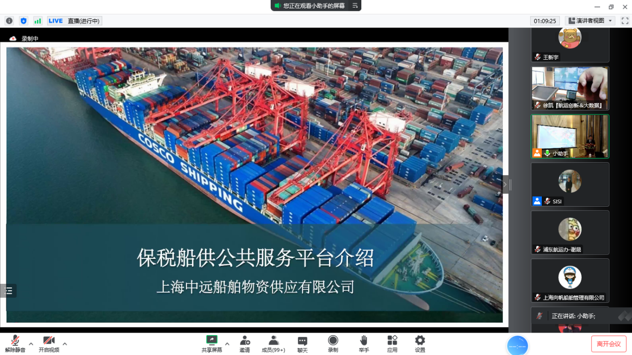 上海中远船舶物资供应有限公司总经理助理叶耀辉发表了题为“保税船供公共服务平台介绍”的主题演讲,介绍了临港新片区于2022年8月上线的保税船供公共服务平台。该平台利用洋山特殊综合保税区区港一体,物流仓储设施齐全,船舶维修业态集聚,高能级航运服务产业集聚等优势,使用现有的物流仓储设施,拓展船舶备件区港直供功能,通过引进上海中远船舶物资供应有限公司作为供船主体,凭借其国产船舶供应物资可退税的资质和综保区入区退税政策,解决国产船舶备件供船无法退税问题,吸引全球主要船供企业、全球船用配件供应商在洋山特殊综合保税区开展船供业务,从而带动船用配件贸易向区内集聚。