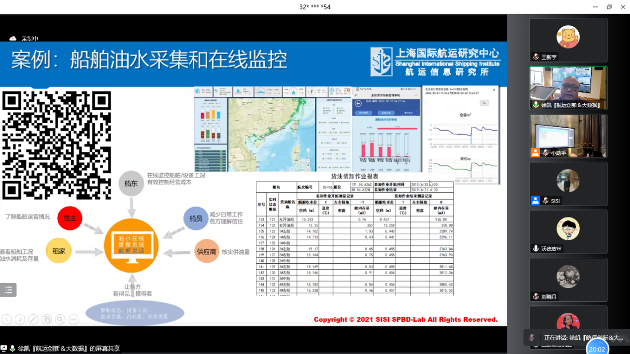 上海国际航运研究中心航运信息化研究所所长徐凯发表了题为“船舶智慧经营和模式创新”的主题演讲,介绍了大数据如何赋能船舶智慧经营业务和数字化如何推动航运业电子商务和平台进行模式创新。会上,徐所长以中远海运科技“船视宝”等案例介绍了船舶智慧经营及AIS数据挖掘的重要性,指出借助大数据手段可以实现船舶租金走势预测、船舶抵港时间预测、海峡型船的空载运力跟踪等业务场景,并从大数据角度指出集运价格回落已成定局。同时,徐所长详细介绍了集装箱货运物流平台和散货运输电商平台两大航运电商竞争领域,取金马云物流和瀛海云管船两个案例详细介绍了数字化带来的航运新业态。