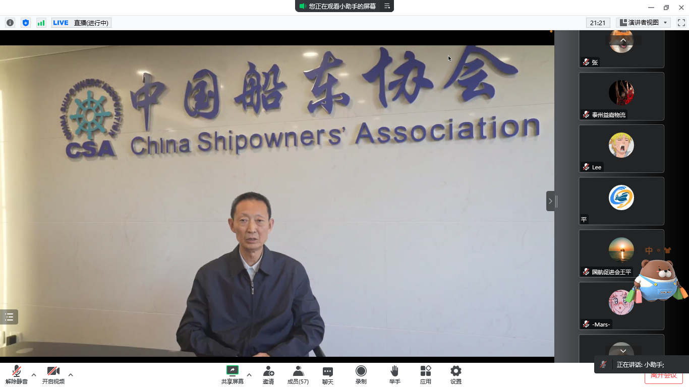 浦东新区商务委航运服务处刘晓丹处长、中国船东协会常务副会长张守国分别发表致辞,对参加本次论坛的线上线下嘉宾表示热烈的欢迎。