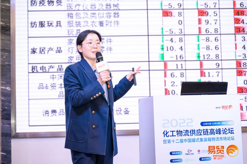 2022年11月14日,上海国际航运研究中心国际航运研究所所长助理、高级分析师郑静文,受邀参加化工物流供应链高峰论坛暨第十二届中国罐式集装箱物流市场论坛并发表主旨演讲,郑静文分析了2022年以来集装箱市场的发展变化,对运价走势进行分析及解读,并对未来市场发展进行了展望。