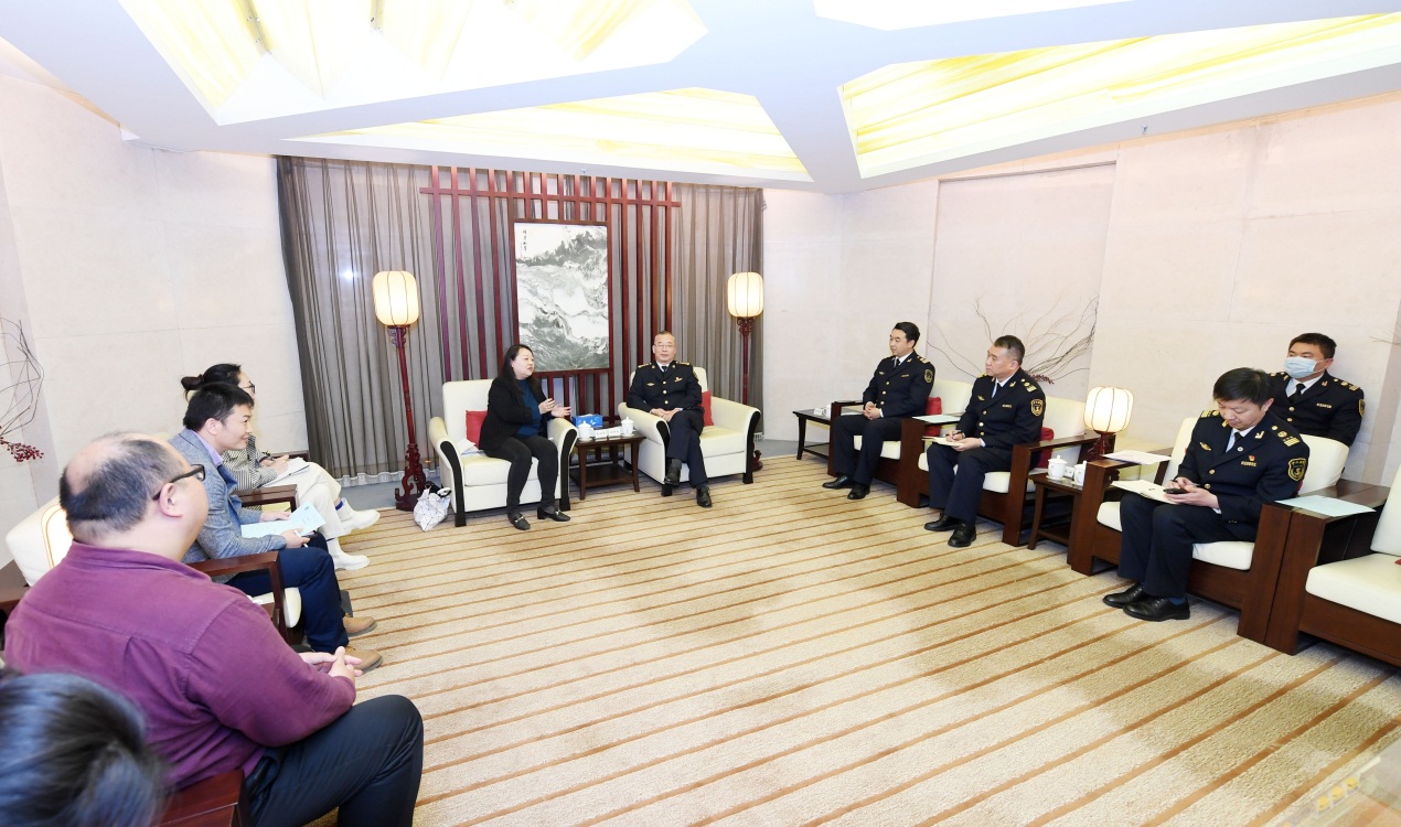 3月9日下午,上海国际航运研究中心秘书长张婕姝、副秘书长兼港口研究所赵楠、航运发展研究所所长周德全、航运信息研究所所长徐凯和理事服务部主任陆玮玲应约拜访上海海事局。上海海事局局长谢群威、局办公室主任杜羿卓、通航管理处处长蒋立安、船舶监督处处长张炜予以接待。张秘书长和几位所长就上海国际航运研究中心在港口发展、航运市场和信息化建设等方面的研究向谢局长做了汇报。双方就今后在海事行业相关指数开发、标准制定、项目研究等领域的合作达成了一致意见,并就今后双方的下一步合作进行了安排。