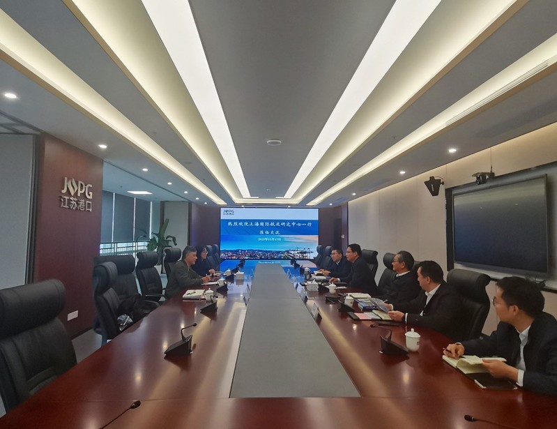 副秘书长赵楠对研究中心资源配置、发展历程、以往成就等进行介绍,总经理王洪涛就江苏省港集团经营情况、业务模式、发展规划等方面进行详细阐述,双方就港产城融合发展、腹地资源整合、集疏运体系建设等方面进行交流讨论,并对未来合作机会展开了探讨。