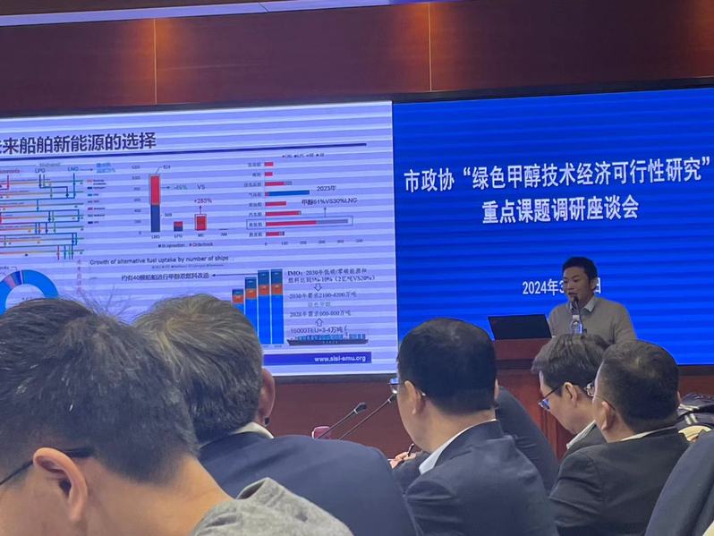 2024年3月14日,上海市政协经济和金融委员会在中科院上海高等研究院组织召开“绿色甲醇技术经济可行性研究”重点课题调研座谈会,市政协分管副主席出席。上海国际航运研究中心首席经济师、航运发展研究所所长周德全受邀代表上海海事大学参会,并就“绿色甲醇技术经济可行性”作交流发言。