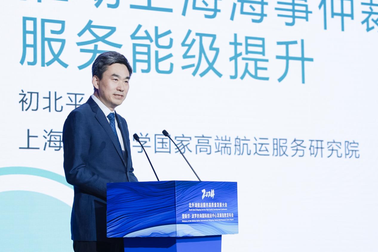 初北平教授作了题为“培养本土人才,推动上海海事仲裁服务能级提升”主旨发言,全面阐述了海事仲裁服务内涵发展及要素体系,提出了本地海事仲裁相关人才培养的六大路径,以及未来提升上海海事仲裁服务水平的三大难点,为推动国际海事仲裁规则制度创新提供了新思考、新路径。