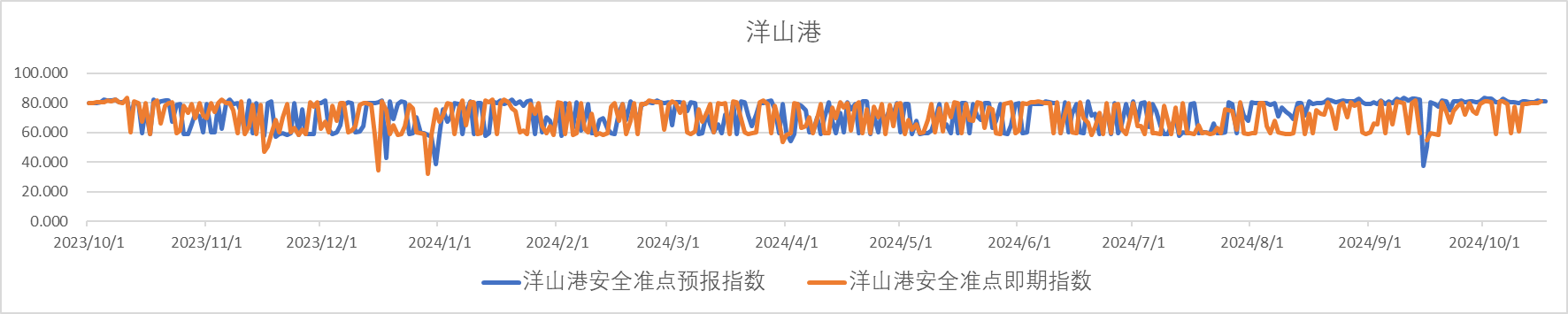 通过对上海港水域的预测通航环境、船舶预计抵港时间申报准确性(预计抵港准点率)、预测船舶航行动态等多维数据进行深入分析,形成进出港通航安全预报评价指标体系和准点预报评价规则,编制并发布上海港国际航行集装箱船舶进出港安全准点预报指数,并于每个工作日发布当天的预报指数结果(例如:10月17日发布10月17日的预报指数结果)和前一天的即期指数结果(例如:10月17日发布10月16日的即期指数结果)。