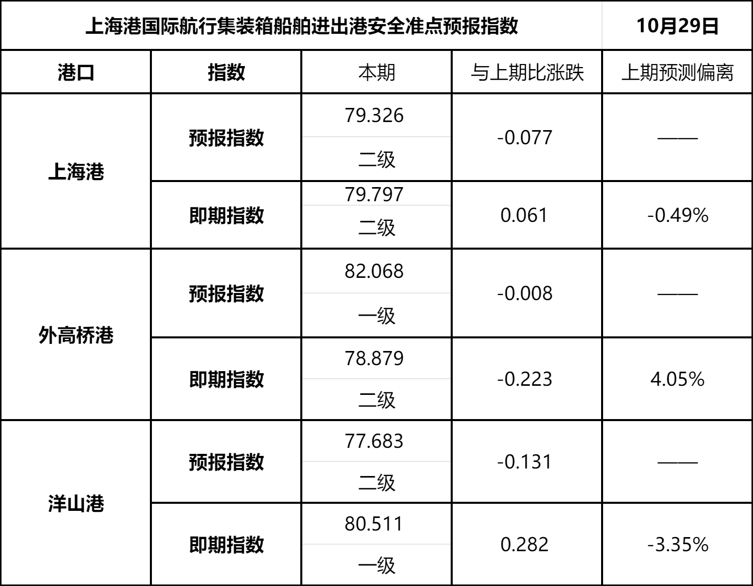 【发布】上海港国际航行集装箱船舶进出港安全准点预报指数(10.29)