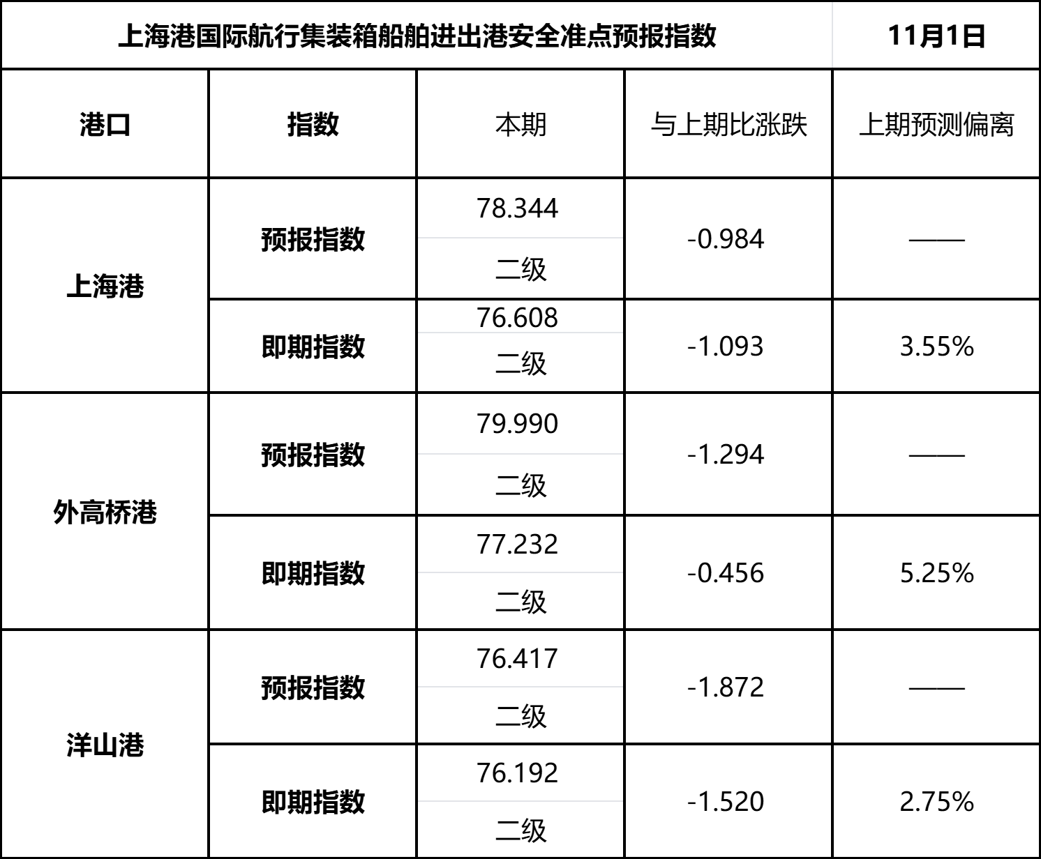【发布】上海港国际航行集装箱船舶进出港安全准点预报指数(11.1)