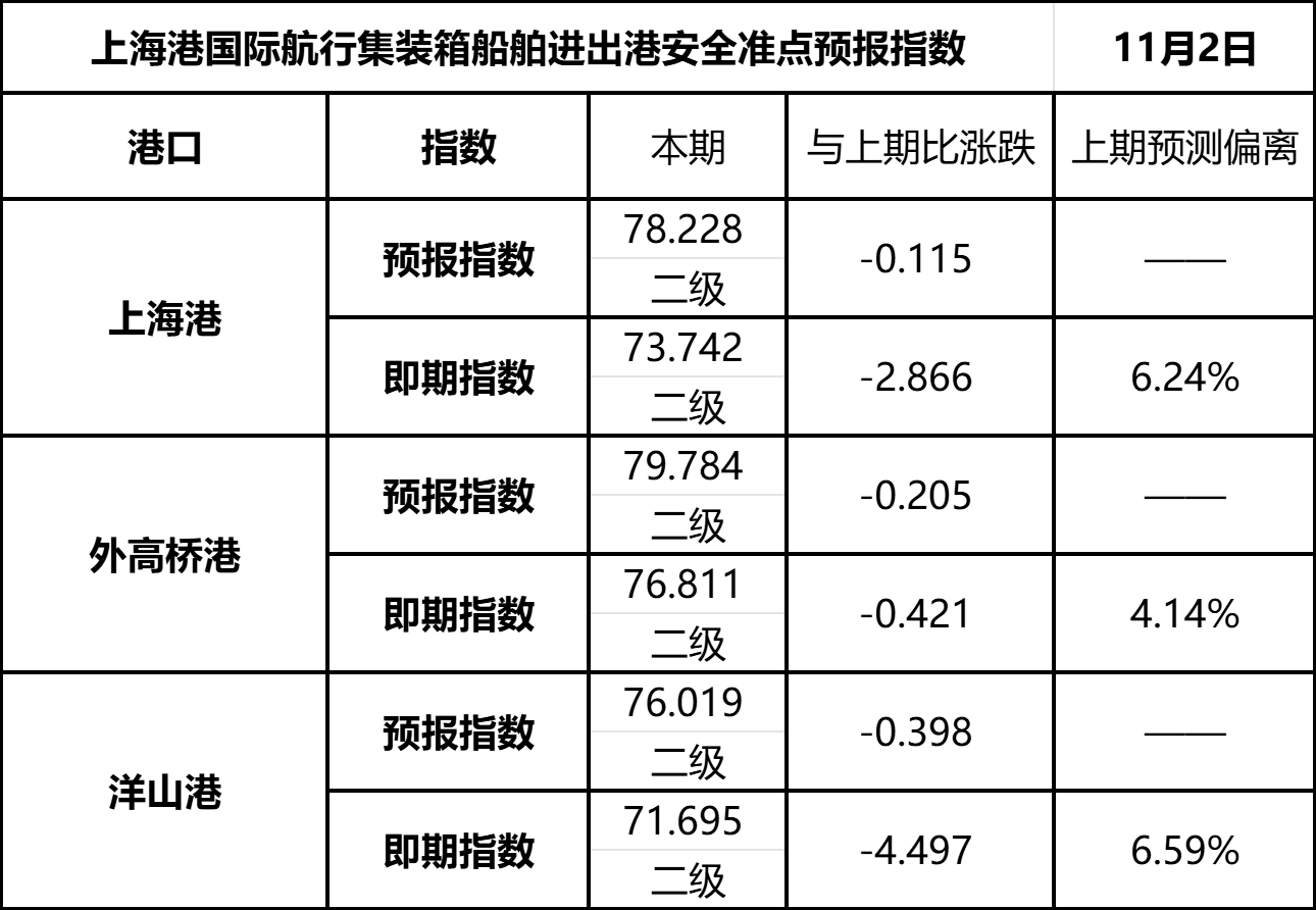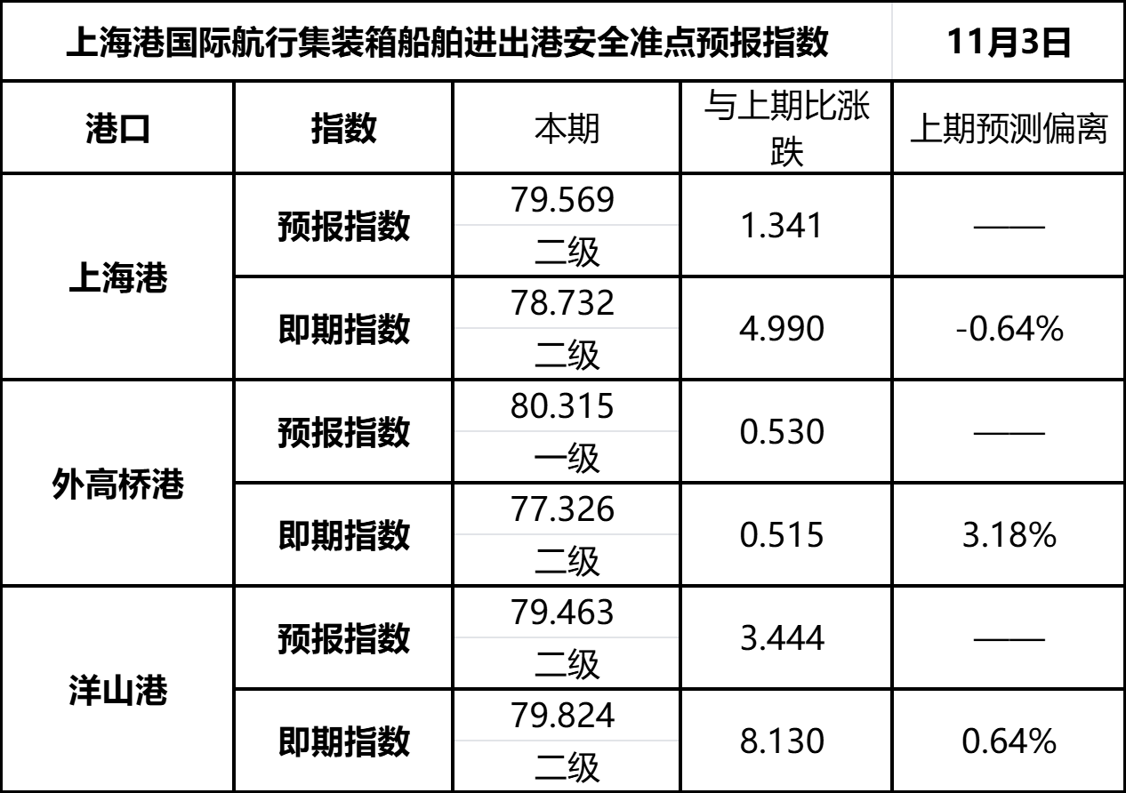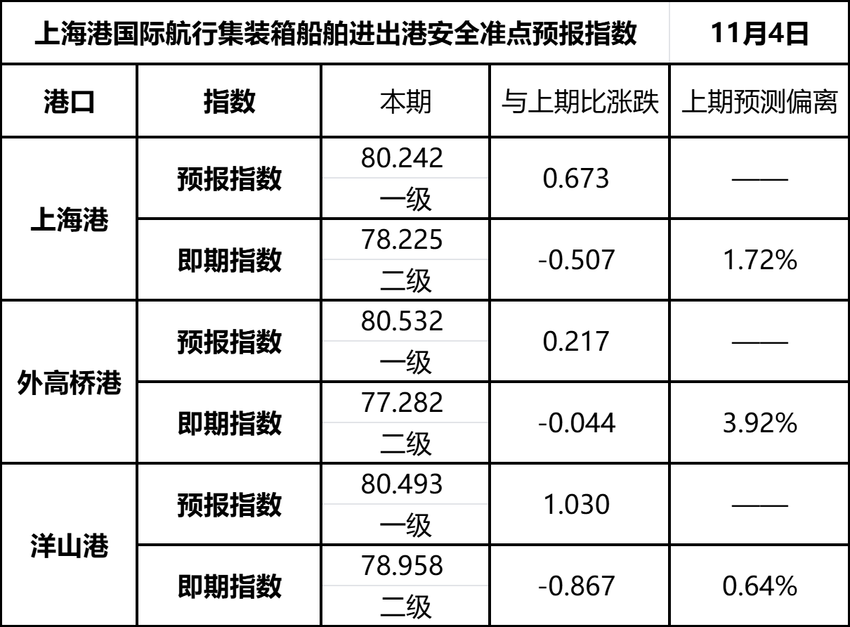 上海港国际航行集装箱船舶进出港安全准点预报指数分级说明