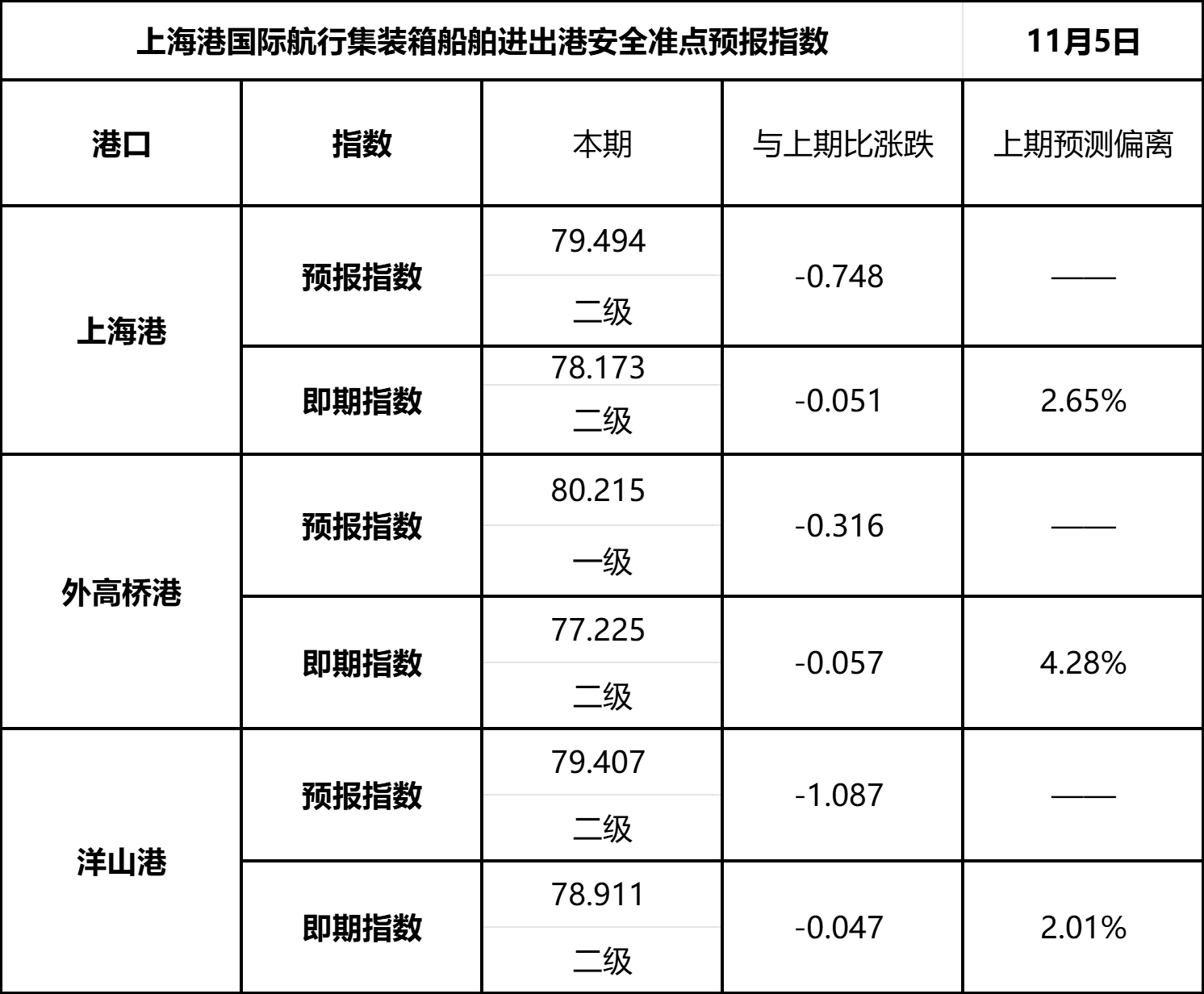 【发布】上海港国际航行集装箱船舶进出港安全准点预报指数(11.5)