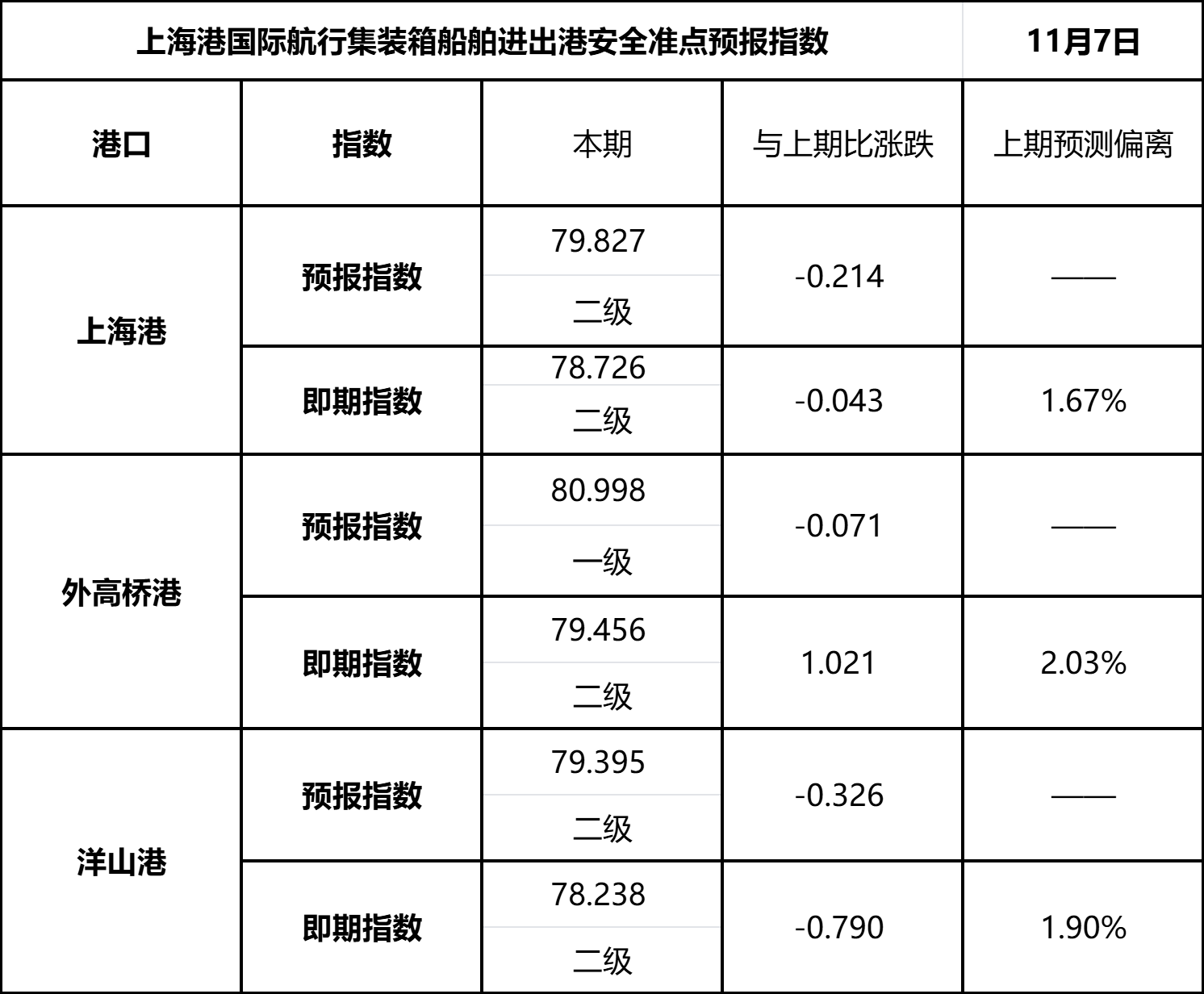 上海港国际航行集装箱船舶进出港安全准点预报指数分级说明