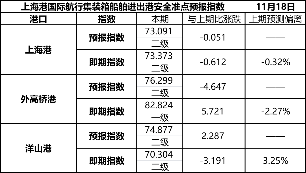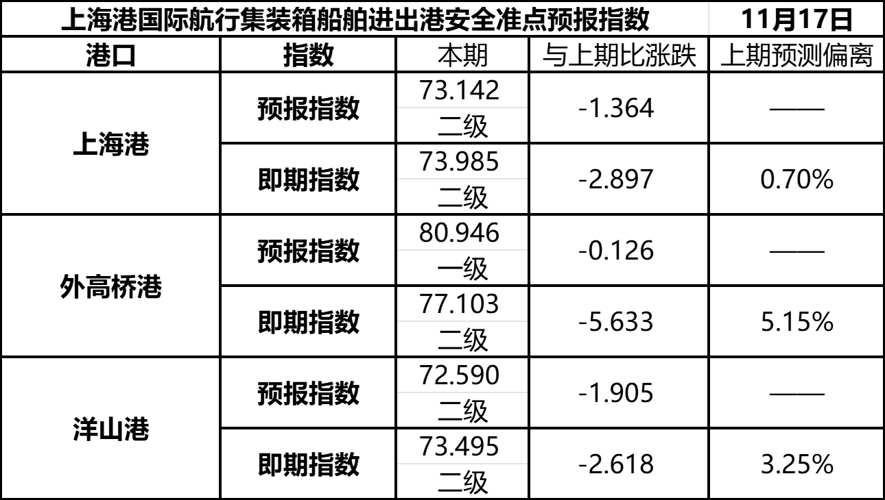 上海港国际航行集装箱船舶进出港安全准点预报指数分级说明
