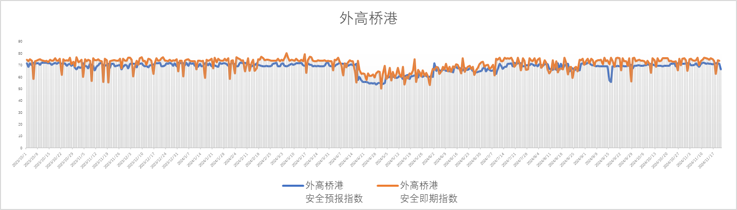 该指数运用AIS大数据技术,分析近十年上海港靠离泊作业准点情况和事故险情数据,从环境、船舶、航行、管理四个维度构建临近预报(Nowcasting)模型,评估与预报船舶进出港安全和靠离泊准点态势。