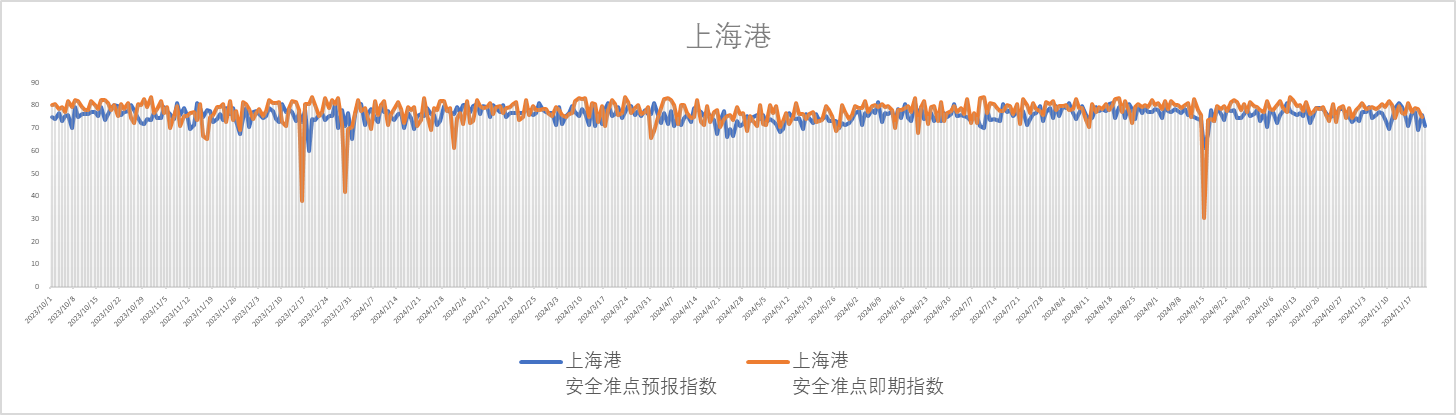 作为中国重要的海运物流节点,上海港位列全球最繁忙的港口之一,港区内的船舶安全和准点到港非常重要。为保障船舶进出港安全监管与准点运维,中华人民共和国洋山港海事局与上海海事大学上海国际航运研究中心在此前联合研发的“洋山港国际航行集装箱船舶进出港安全准点指数”的基础上,于20241017正式上线“上海港国际航行集装箱船舶进出港安全准点预报指数”