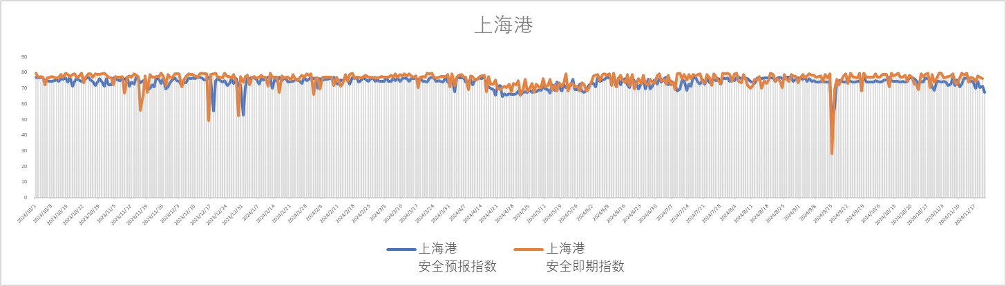 作为中国重要的海运物流节点,上海港位列全球最繁忙的港口之一,港区内的船舶安全和准点到港非常重要。为保障船舶进出港安全监管与准点运维,中华人民共和国洋山港海事局与上海海事大学上海国际航运研究中心在此前联合研发的“洋山港国际航行集装箱船舶进出港安全准点指数”的基础上,于20241017正式上线“上海港国际航行集装箱船舶进出港安全准点预报指数”