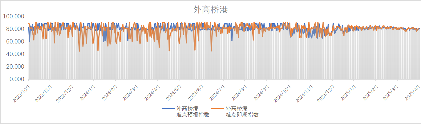 通过对上海港水域的预测通航环境、船舶预计抵港时间申报准确性(预计抵港准点率)、预测船舶航行动态等多维数据进行深入分析,形成进出港通航安全预报评价指标体系和准点预报评价规则,编制并发布上海港国际航行集装箱船舶进出港安全准点预报指数,并于每个工作日发布当天的预报指数结果(例如:1017日发布1017日的预报指数结果)和前一天的即期指数结果(例如:1017日发布1016日的即期指数结果)。