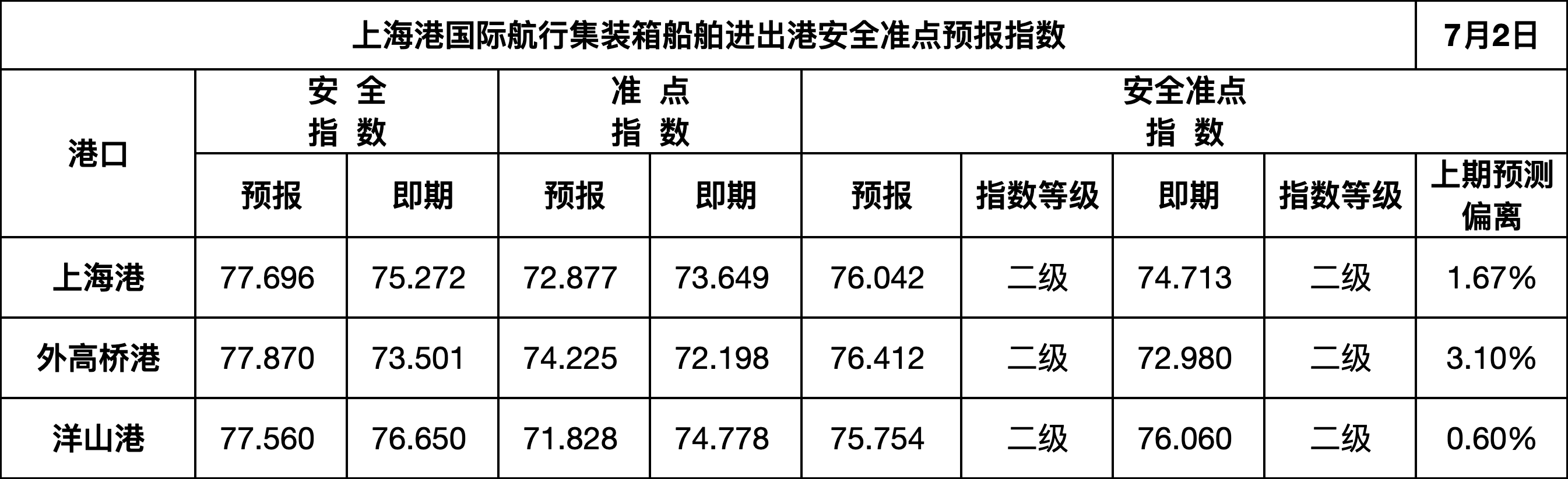 【发布】上海港国际航行集装箱船舶进出港安全准点预报指数(7.2)