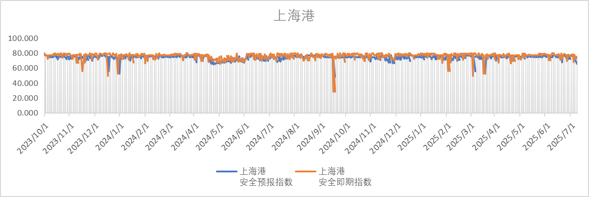 作为中国重要的海运物流节点,上海港位列全球最繁忙的港口之一,港区内的船舶安全和准点到港非常重要。为保障船舶进出港安全监管与准点运维,中华人民共和国洋山港海事局与上海海事大学上海国际航运研究中心在此前联合研发的“洋山港国际航行集装箱船舶进出港安全准点指数”的基础上,于20241017正式上线“上海港国际航行集装箱船舶进出港安全准点预报指数”