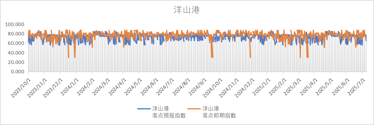 通过对上海港水域的预测通航环境、船舶预计抵港时间申报准确性(预计抵港准点率)、预测船舶航行动态等多维数据进行深入分析,形成进出港通航安全预报评价指标体系和准点预报评价规则,编制并发布上海港国际航行集装箱船舶进出港安全准点预报指数,并于每个工作日发布当天的预报指数结果(例如:10月17日发布10月17日的预报指数结果)和前一天的即期指数结果(例如:10月17日发布10月16日的即期指数结果)。
