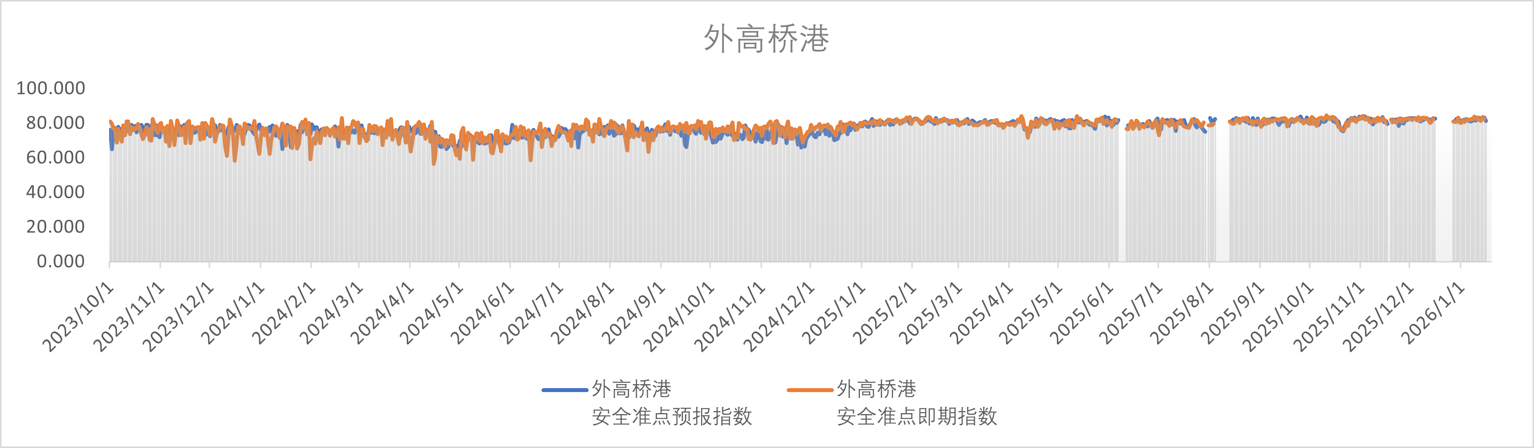 该指数运用AIS大数据技术,分析近十年上海港靠离泊作业准点情况和事故险情数据,从环境、船舶、航行、管理四个维度构建临近预报(Nowcasting)模型,评估与预报船舶进出港安全和靠离泊准点态势。