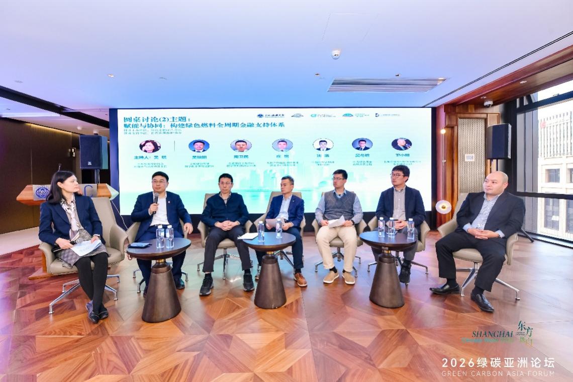 第二场由自然资源保护协会环境法与治理项目主任吴琪接棒主持人,研讨嘉宾包括中船租赁企划部兼董事会办公室总经理袁超、上海亿通国际股份有限公司常务副总经理卫小明、中美绿色基金高级投资总监吴冬晗、太保产险航运保险事业营运中心副总经理庄悦、交通银行上海分行授信管理部副总经理周卫民,以及上海绿能低碳科学技术研究院院长吴映阳。围绕“赋能与协同:构建绿色燃料全周期金融支持体系”,聚焦定价机制,就绿色甲醇、绿氨等燃料的成本加成、碳溢价及绿色属性溢价如何量化进行剖析,并讨论了阿格斯、标普等国际价格指数方法论在中国市场的适用性。