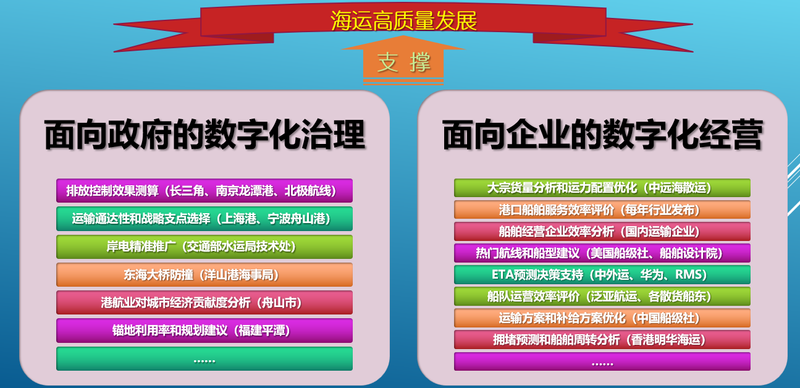 应用场景:实验室的研究成果广泛应用于集装箱船舶ETA服务、散货船ETA服务等场景,全面支撑上海国际航运研究中心对外的航运咨询和贸易研究工作。